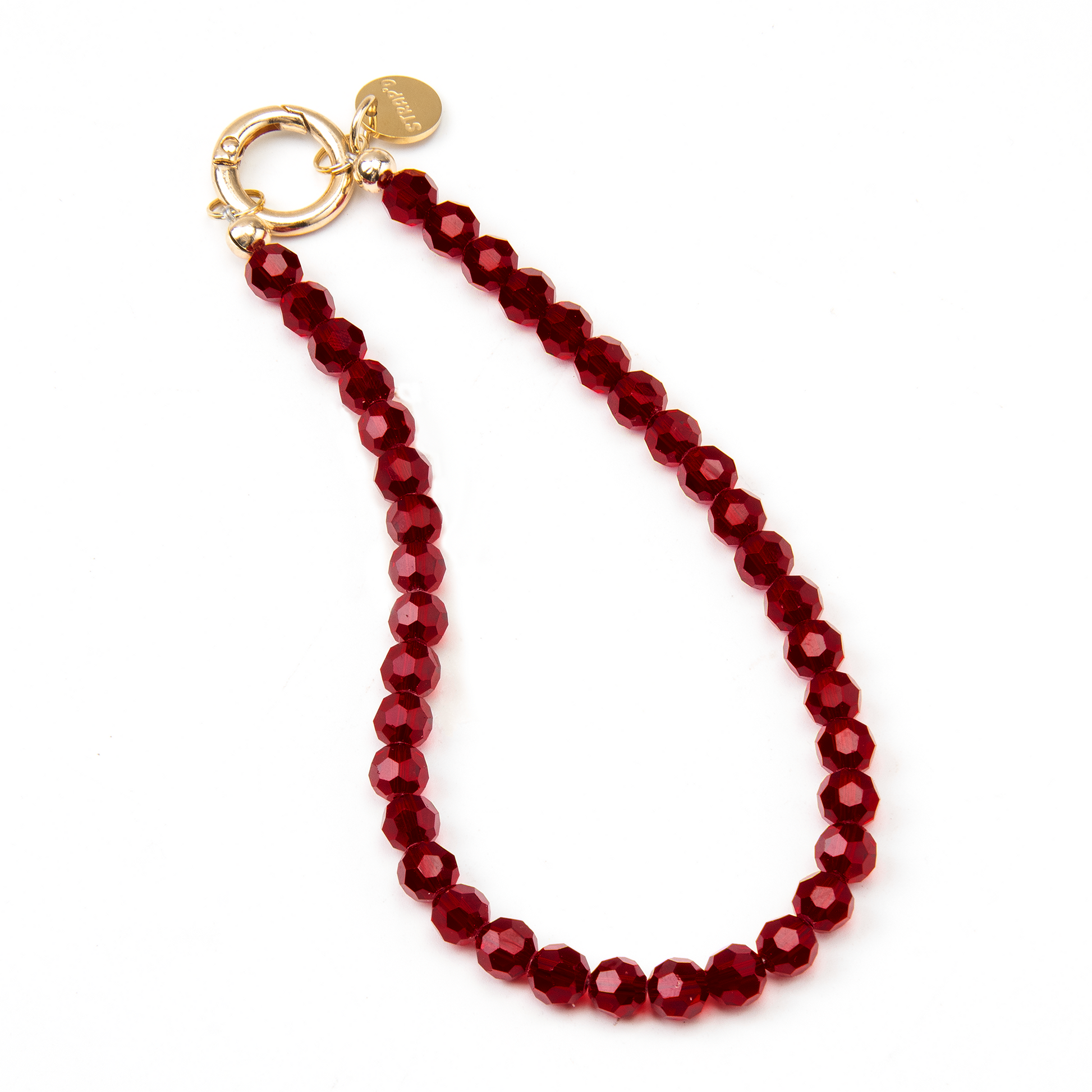 The strap for everyone, where style meets practicality without compromising function. This handheld short strap offers an elegant approach to phone accessories, featuring acrylic glass beads and stainless wire with Gold hardware. The product includes a clear adaptor for easy connection to your phone.